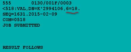 EXE-REQ-MT(или 518):VAL,DN=K’2994601, 6=18;