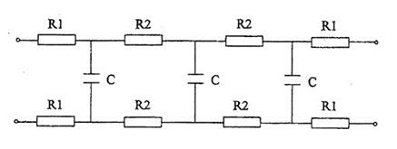 (шкафы, распределение), то для создания примерно реальных условий эксплуатации мы изготовили адаптеры линий по принципиальная схема звена искусственной двухпроводной физической цепи с затуханием 5,0 дБ на частоте 1000 Гц, имитирующая кабель с диаметром жил 0,5 мм, изображена на рисунке 1.
