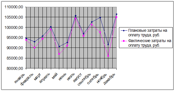 Рис.2.2. Соотношение плановых и фактических затрат на оплату труда в 2009г в ООО «СтройСервис»
