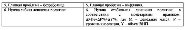 Монетаристская концепция и монетаристские рецепты отличаются от кейнсианских, а иногда и противоречат им. Вместе с тем было бы неправильно проводить резкую грань между этими двумя подходами к проблеме экономического регулирования. Обе теории построены применительно к условиям рыночной экономики, обе теории взаимодополняют друг друга, составляя теорию определения общего дохода. Кейнс обосновывает количественную зависимость доходов от расходов, Фридмен – зависимость доходов от денег. Вместе с тем между подходами Кейнса и Фридмена имеются немалые различия.