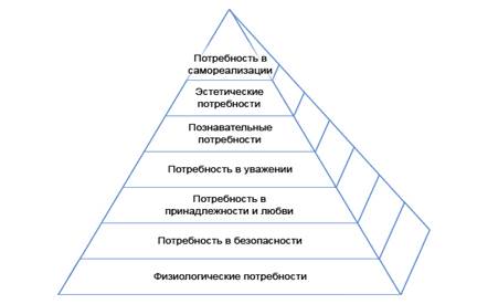 Профессор Абрахам Г. Маслоу из Университета Брандиса приводит семь основных категорий потребностей – базовых факторов, определяющих человеческое поведение. Графически их можно изобразить в виде пирамиды, где каждая последующая потребность базируется на предыдущих и возникает по мере удовлетворения предыдущей потребности.