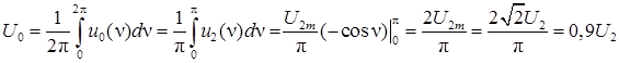 С учетом того, что кривая выпрямленного напряжения и тока состоит из двух полуволн, среднее значение выпрямленного напряжения по определению равно: