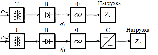 выпрямителей (а) и стабилизирующих ИВЭП непрерывного типа (б)