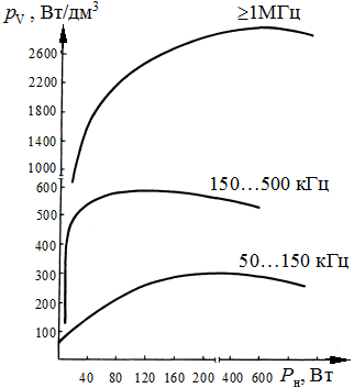 | Рис. 1.5 - Зависимость удельной мощности ИВЭП от частоты преобразования |