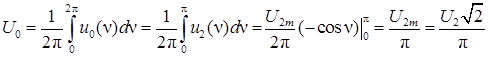 Среднее значение выпрямленного напряжения на нагрузке находится путем интегрирования за период: