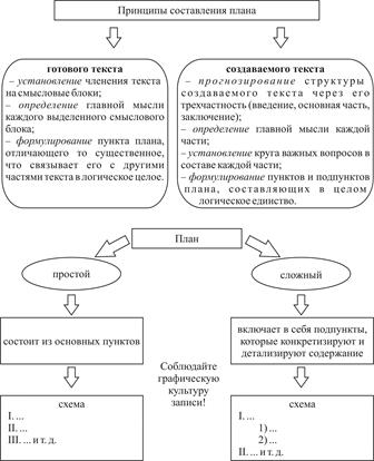 План – самая краткая запись, не передает фактического содержания, лишь учитывает манеру и схему подачи.