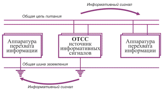 Рис. 3. Прямые электрические каналы утечки информации, возникающие за счет электромагнитных наводок в посторонних проводниках