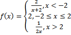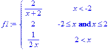 > f1:=piecewise(x<-2,2/(x+2),x>=-2 and x<=2,2,x>2, 1/(2*x));