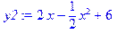 > y2:=2*x-(x^2)/2+6;