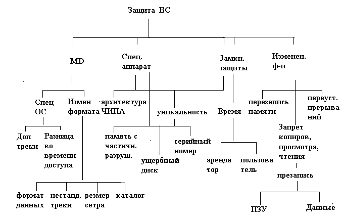 Защита дисков выполняется различными способами, которые могут усложняться в зависимости от квалификации хакеров, их уровня знаний и способностей. Основная техника заключается в форматировании диска специальными способами, которые предохраняют операционную систему от копирования. Это- нестандартное определение форматов данных или каталогов, изменение размеров секторов, увеличение числа синхронизирующих битов и замена информационных заголовков. Поскольку время обращения к секторам различно, то программным способом можно определить время запаздывания при чтении различных секторов, а поскольку при копировании с помощью стандартной DOS расположение секторов изменится, то запаздывания не будут более соответствовать запаздываниям исходной копии.
