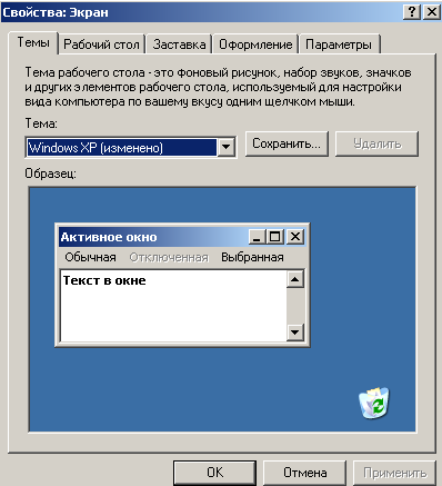 · активизация Панели управления Windows и запуск программного компонента Экран, предназначенного для настройки параметров экрана (рисунок 1);
