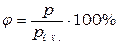 Относительной влажностью воздуха φ называют выраженное в процентах отношение давления водяного пара p, находящегося в воздухе, к давлению насыщенного пара p н.п. при данной температуре:
