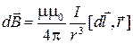 вектор, численно равный длине элемента проводника и совпадающий по направлению с током; r – радиус-вектор, проведенный из элемента проводника dl в рассматриваемую точку,
