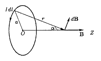 Одной из основных характеристик магнитного поля является вектор магнитной индукции, который можно определить, используя закон Био-Савара–Лапласа. По этому закону каждый элемент длины проводника dl, по которому течет ток I, создает в некоторой точке А на расстоянии r от элемента проводника dl магнитную индукцию dB (рис.1).