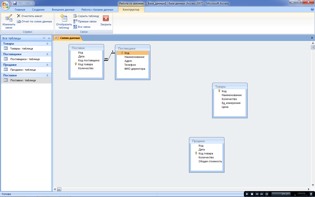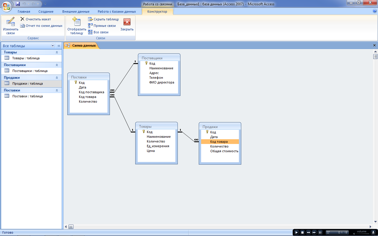 Когда установлены связи между таблицами, получится схема, как на рисунке 9.