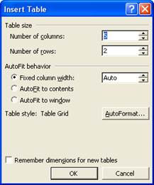 · Выполнить команду Вставить таблицу меню Таблица.