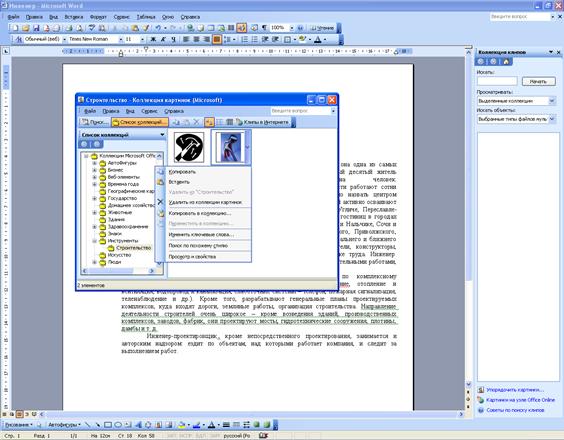 Рис. 2.17. Вставка стандартного рисунка из коллекции