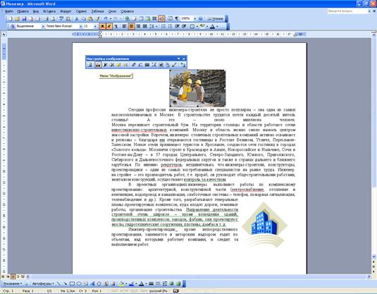 Задание формата обтекания рисунка текстом