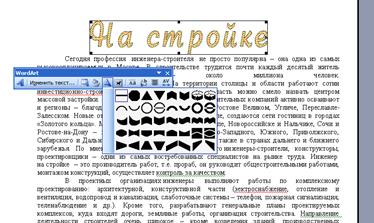 Затем набрать текст, выбрать шрифт, размер и начертание и нажать ОК. Надпись появится в документе. Для редактирования надписи нужно щелкнуть по ней и появится панель инструментов WordArt. С ее помощью можно Изменить текст надписи, изменить размер, положение надписи относительно основного текста, тип, толщину и цвет линий, цвет или тип заливки, направление текста, выровнять надпись, перевести ее в вертикальную, задать межсимвольные интервалы.