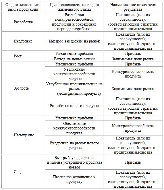 Таким образом, можно констатировать изменчивость результирующих показателей предпринимательской деятельности в зависимости от стадии жизненного цикла продукции, а также возможность их комбинации, обусловленную структурными изменениями в целях и задачах предпринимательства.