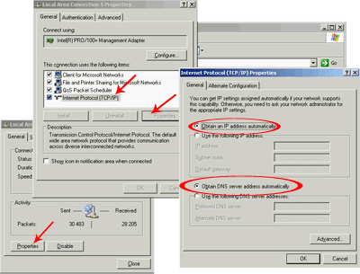 Проверим правильность установок IP-адресации у сетевой карты. По-умолчанию, ОС Windows (2K/XP) сама назначает нужные IP адреса картам.