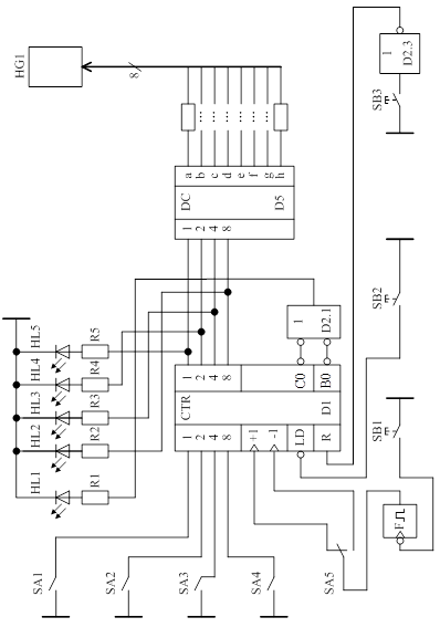 | Рисунок 9 – Принципиальная электрическая схема контроля работы двоичного реверсивного счетчика с предустановкой (технологическая карта V-3) |
