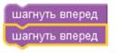 Каждый блок - это одна команда (строчка кода). Если перенести блок «Шагнуть вперед» в рабочую область и нажмешь кнопку «Запустить программу», Ам Ням продвинется по дорожке на один шаг вперед.
