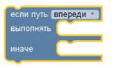 Так же, как блок "Если", блок "Если-Иначе" можно поместить внутрь блоков "Повторять, пока не…", чтобы герой с помощью блока "Если-Иначе" постоянно проверял во время движения возможность повернуть и выбирал самостоятельно правильное решение.