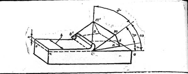 001— задняя грань; 01m1n1 — боковые грани; Jtda —плоскость резания; β — угол заострения; δ — угол резания; а — задний угол; γ — передний угол; σ — ширина детали.