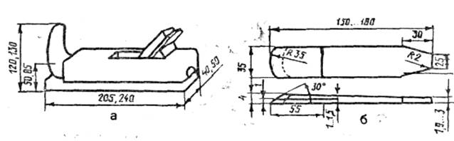 Фалъцгебелъ (рис. 7, а) предназначен для отборки и зачистки четвертей и имеет в отличие от зензубеля ступенчатую подошву.