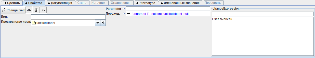 Рис.7. Свойства события «Счет выписан» (тип: событие изменения).