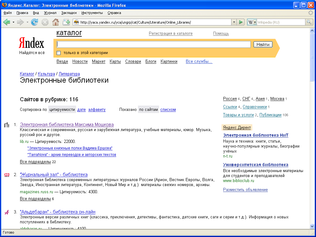 Информация на этих серверах структурирована по темам и подтемам. Имея намерение осветить какую-то узкую тему, нетрудно найти список web-страниц, ей посвященных.