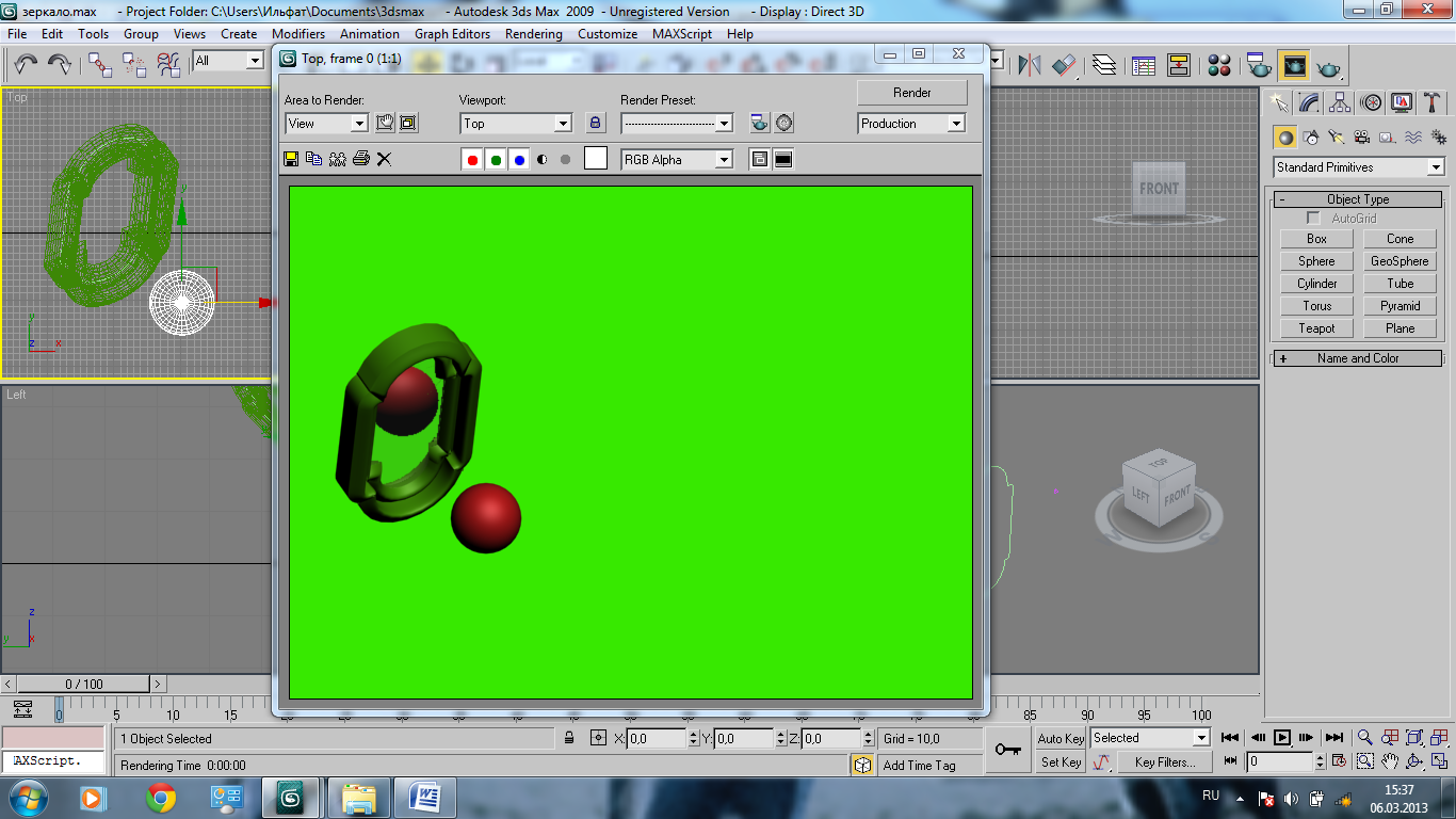 1. Создали зеркало объединив 2 круга и прямоугольник, придали ему форму создав форму сечения. И создали зеркальную поверхность с ручкой. (Рис. 3)