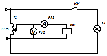 Рис. 1 Схема электрическая исследования электромагнитного пускателя.