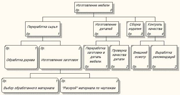 & Диаграмма дерева узлов показывает иерархию работ в модели и позволяет рассмотреть всю модель целиком, но не показывает взаимосвязи между работами (рис. 4.1.).