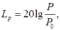 где Р – звуковое давление в точке пространства, Па; P 0- пороговое звуковое давление, равное 2·10-5 Па. Оно является нижним порогом слышимости человека на частоте 1000 Гц.