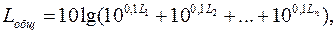 где L 1 ,L 2 ,...,Ln – уровни звука в расчётной точке от различных источников (определяется по формуле 2).