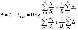 Требуемое снижение уровня звукового давления определяется как: