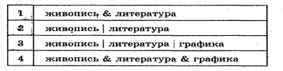 3. В таблице приведены запросы к поисковому серверу. Расположите номера запросов в порядке убывания количества страниц, которые найдет поисковый сервер по каждому запросу. Для обозначения логической операции «ИЛИ» в запросе используется символ |, а для логической операции «И» — &.