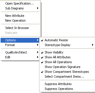Для задания режимов отображений по умолчанию для всех классов предусмотрен пункт меню Tools ->Options, где во вкладке Diagram можно задать эти же значения.