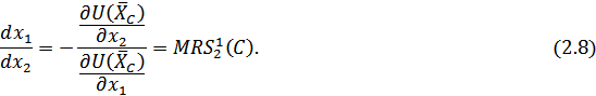 Из выражения (2.8) следует, что предельная норма замены второго блага первым характеризует величину изменения потребления первого блага с уменьшением потребления второго блага на ед. при условии сохранения прежней полезности наборов потребительских благ.