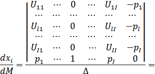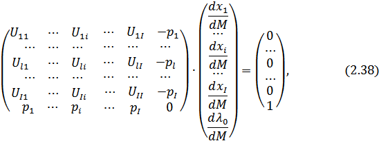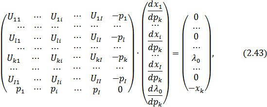 Т.к. решение задачи потребительского выбора в приведенной выше постановке существует и единственно, то определитель матрицы системы (2.38) в точке