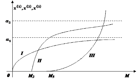 Рис. 2.11. Графическое представление функций Торнквиста спроса на товары первой, второй необходимости и предметы роскоши.