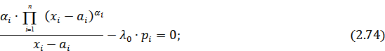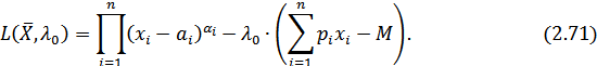 Для решения задачи потребительского выбора (2.68)-(2.70), являющейся задачей на условный экстремум с ограничениями в виде равенств, необходимо использовать условия оптимальности теоремы Куна-Таккера и составить функцию Лагранжа: