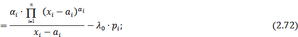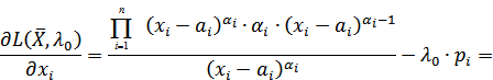 Определим первые частные производные функции Лагранжа (2.71) и построим систему уравнений, из которой найдем соотношения для объемов потребляемых производственных факторов