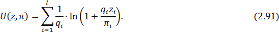 Из (2.78) с учетом ограничения (2.69) получим выражение для рассматриваемой функции полезности: