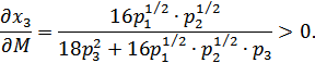 Знак «+» полученных выражений свидетельствует о прямой зависимости объемов потребляемых благ от бюджета потребителя, т.е. спрос на каждое благо растет при увеличении бюджета