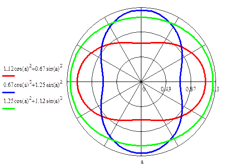 в уравнениях (7-9), строим кривые образованные сечениями эллипсоида тензора моментов инерции координатными плоскостями. Результаты измерений заносим в таблицу.