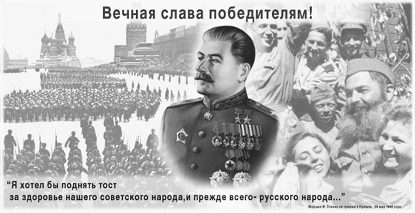 И вот тут в полной мере определяется причина нынешней ненависти власть имущих к Сталину. Ведь что явилось ключом к Победе? Нет, не заработавшая блестяще военная индустрия. Нет, не накопившийся в войсках опыт воевать. Всё это было уже следствием. Первопричина в ином, в том, что Сталин поистине гениально прочувствовал нерв, который называется национальный дух народа, и сделал всё для возрождения этого победу творящего духа, начиная с пронзительного обращения «братья и сестры», начиная с возвращения в память народную героических, славных имён Минина, Пожарского, Невского, Суворова, Кутузова, Ушакова, Нахимова, на которых стоял и стоять будет русский героизм, и завершая, наконец, знаменитым тостом «За великий русский народ!».