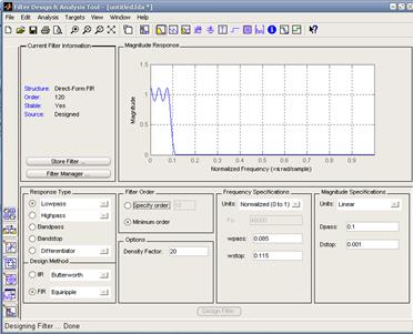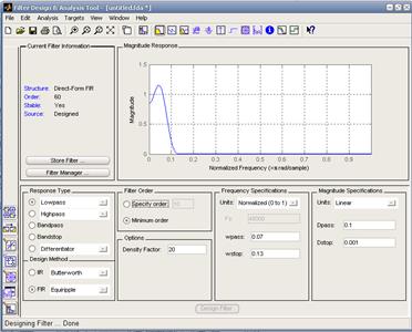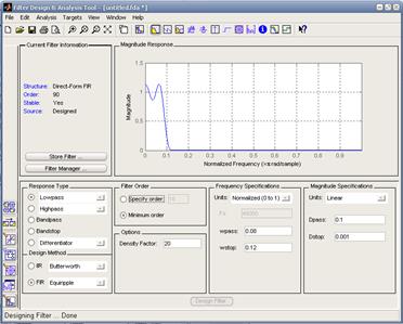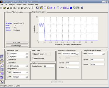 Вывод: при уменьшении отклонений АЧХ от 1 в ПП, отклонение АЧХ от 0 в ПЗ минимальный порядок фильтра увеличивается при фиксированных значениях граничных частот в ПП (wpass) и ПЗ (wstop).